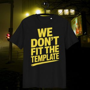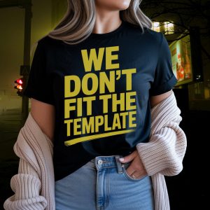 The ZYPHAX™ “WE DON’T FIT THE TEMPLATE” T-Shirt is not a graphic tee.